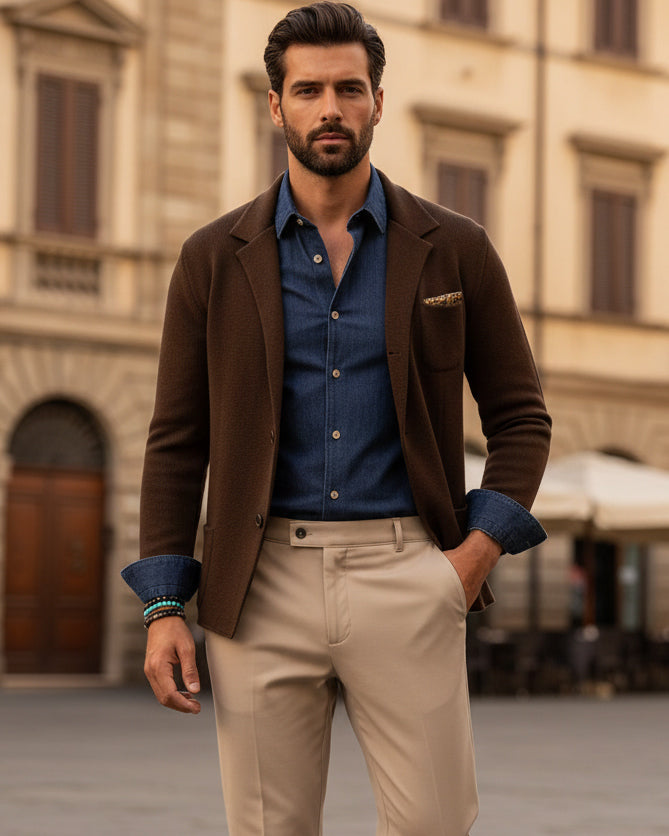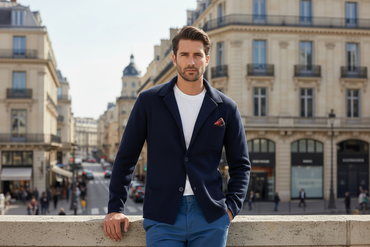 Cardigan uomo giacca con bottoni maglia cotone casual blu GIOSAL-M2664A