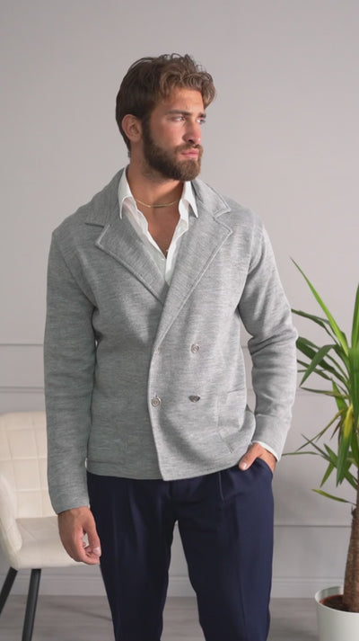 Der doppelreihige Cardigan mit Metallknöpfen ist ein ikonisches Kleidungsstück, das Stil und Funktionalität vereint. Gefertigt aus hochwertigem Garn, bietet er außergewöhnlichen Tragekomfort. Das doppelreihige Design mit der doppelten Knopfleiste aus Metall verleiht ihm Eleganz und Originalität und macht ihn zu einem unverwechselbaren Stück. Die Metallknöpfe bilden einen raffinierten Kontrast zur Struktur des Cardigans. Der V-Ausschnitt rundet den Look stilvoll ab. Ideal zum Tragen über Hemden oder T-Shirts, passt er perfekt zu einem lässig-eleganten oder formellen Outfit.