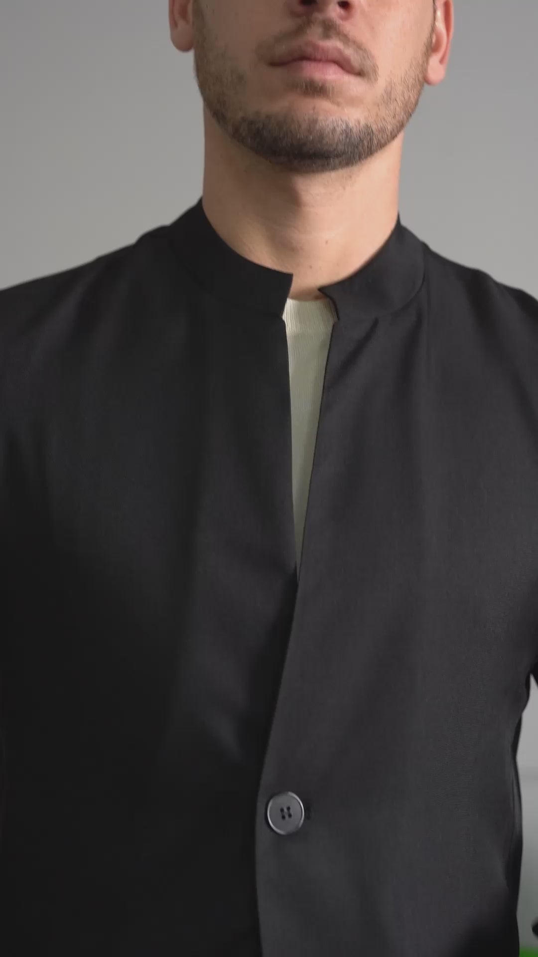 Abito Uomo Monopetto Strutturato Vestito Casual Completo Giacca Coreana Pantaloni Con Abbottonatura Allungata Nero GIOSAL-AE1135A