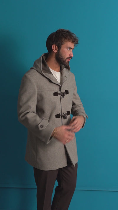 Cappotto Uomo Lana Montgomery Con Alamari E Cappuccio Beige Melangiato CO1074A