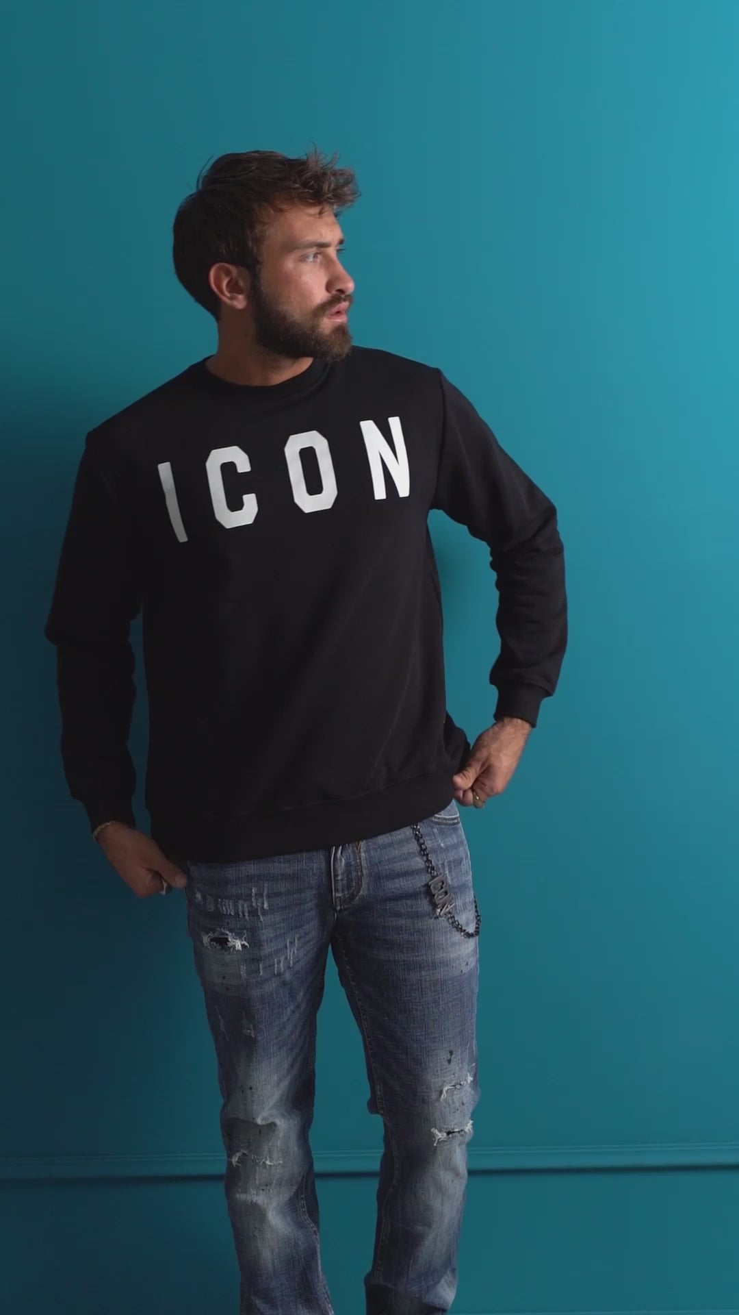 Felpa Uomo Girocollo Stampa Scritta Casual Regular Fit Basic Nero ICON ICUF2W6F001