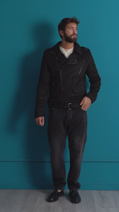 Giubbotto Uomo Chiodo Camoscio Zip Biker Imbottito Nero G3366A