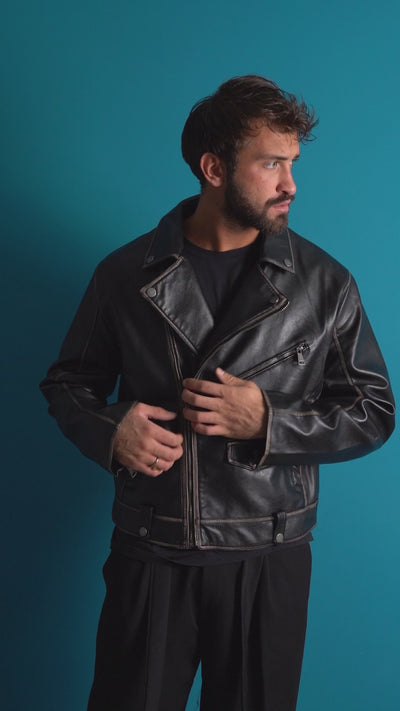 Giubbotto Crop Oversize Chiodo Ecopelle Vintage Nero G3345A
