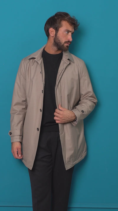 Giubbotto Uomo Trench Impermeabile Tessuto Tecnico Imbottito Beige G3354A