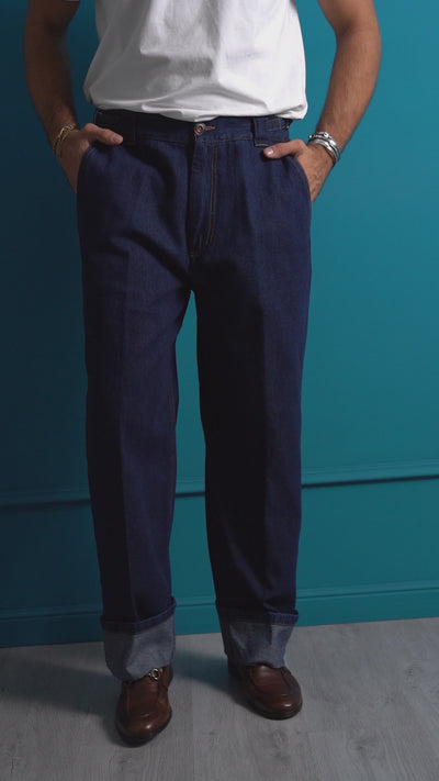 Jeans Uomo Gurkha Pants Baggy Pantaloni Fibbie Denim Scuro Berna M-252122