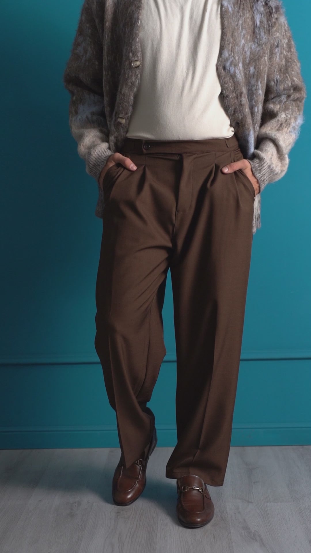 Pantaloni Uomo Baggy Con Pinces Viscosa Vita Alta Gurkha Pants Classico Marrone P6414A